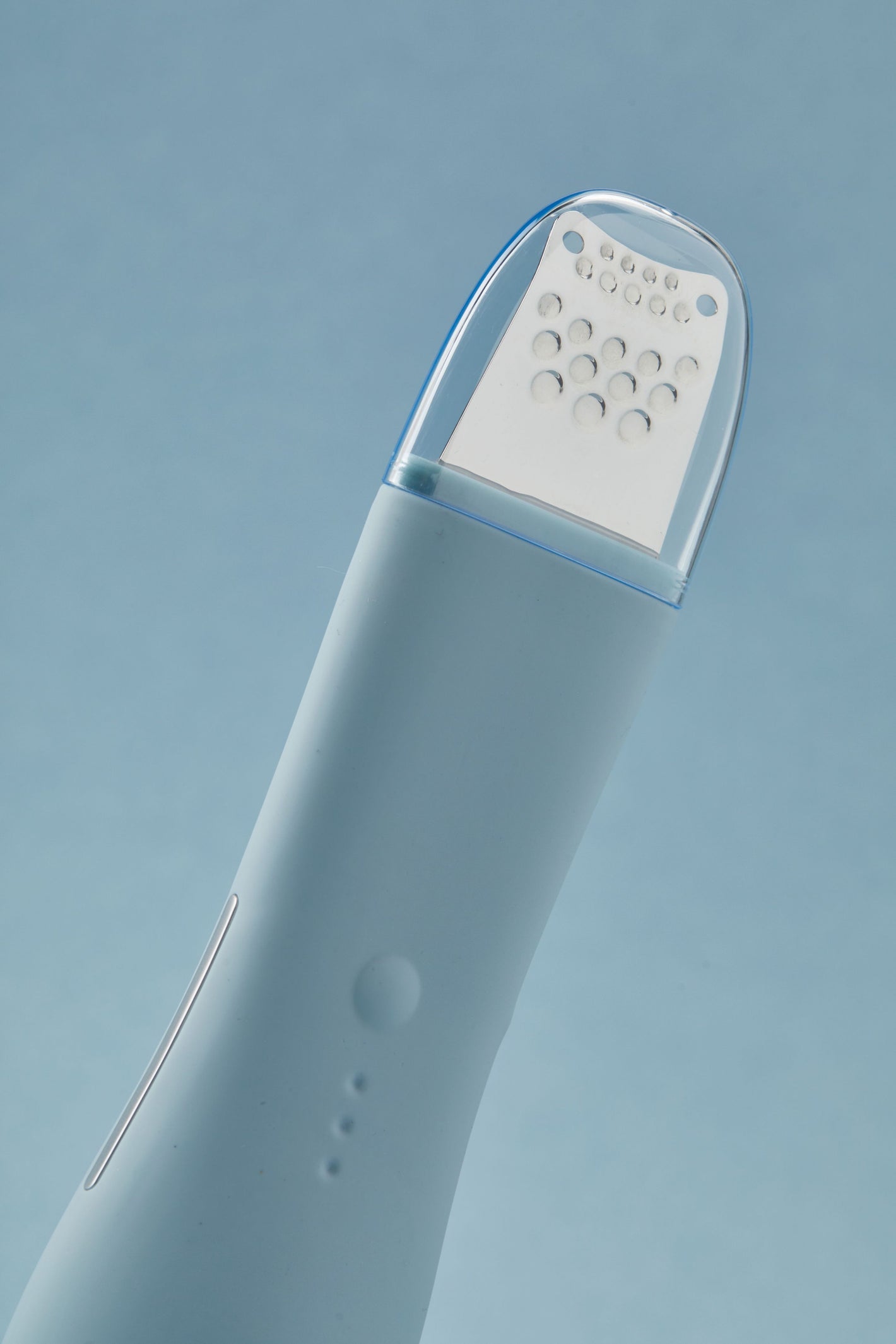 A skin spatula is a handheld skincare tool that uses ultrasonic waves to exfoliate, extract impurities, infuse skincare products, and lift the skin.